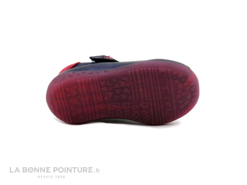 Cette chaussure enfant est en cuir métal bleu marine, avec le contrefort en cuir velouté rose.