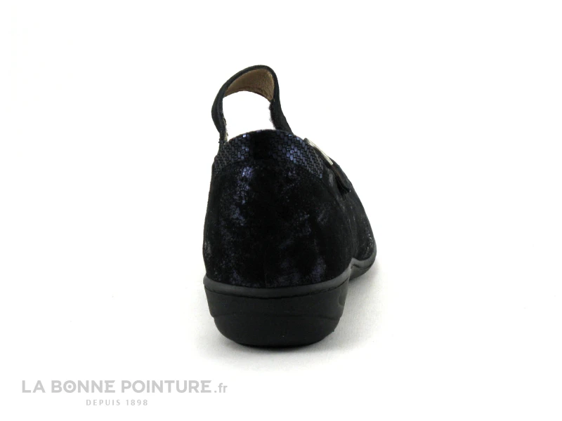 Cette ballerine grande largeur Artika Interino est principalement en cuir velouté bleu métallisé très foncé.