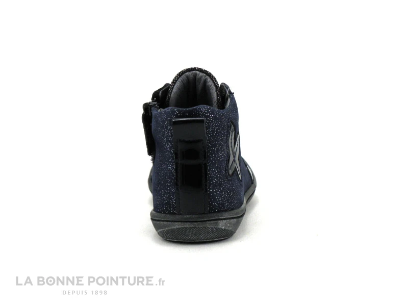Cette basket fille bleu marine combine cuir velours pailleté et cuir verni, parce que c’est bien plus joli quand ça brille !
