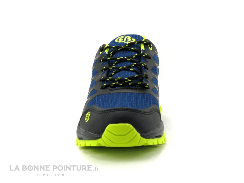 Cette chaussure de marche homme avec membrane imperméable Comfortex et en textile et matières synthétiques résistantes bleu, noir et jaune lime.