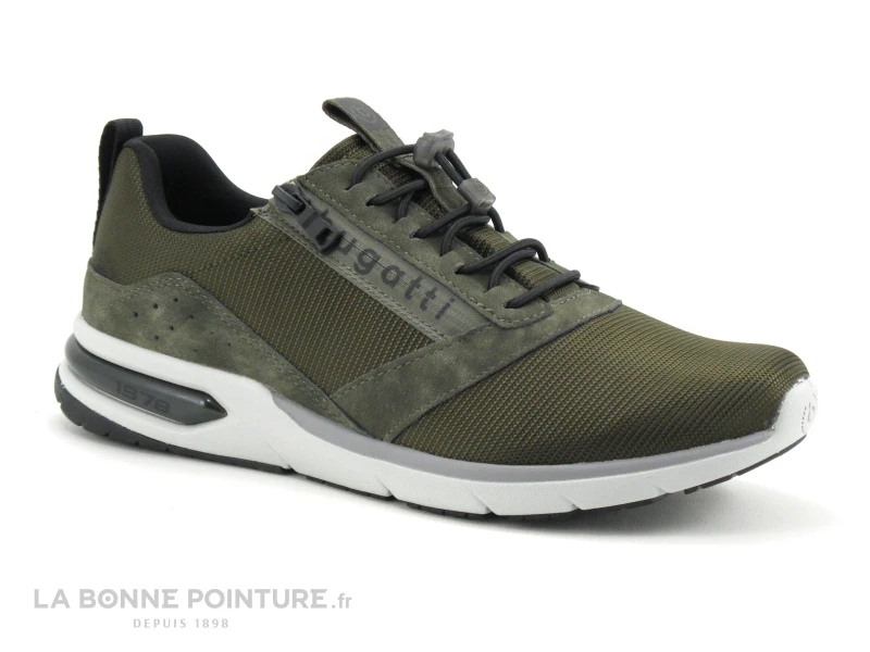 Cette basket Vegan Homme de la Collection Bugatti Green Spirit mélange textile et matières synthétiques résistantes vert kaki.