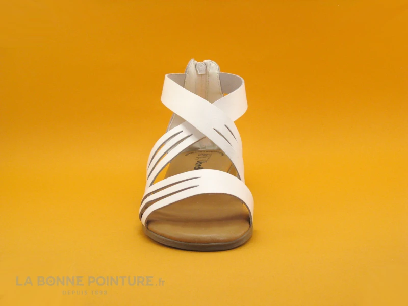 Ces nu-pieds Femme Jordana 2799 sont en cuir blanc non doublé pour plus de souplesse, avec une semelle en cuir à mémoire de forme.
