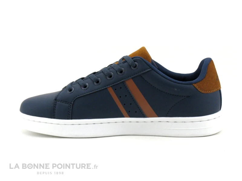 Cette basket mode fille ou garçon Kappa Alpha est principalement en simili cuir bleu marine, avec du marron camel.