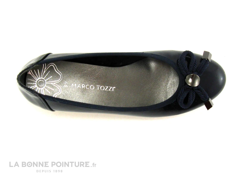 Cet escarpin Marco Tozzi est en simili cuir bleu marine, avec un noeud design et torsadé sur l’avant.