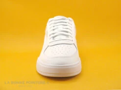 La marque Puma s’affiche à l’arrière des baskets, sur la petite languette bleue qui aide à enfiler la chaussure.
