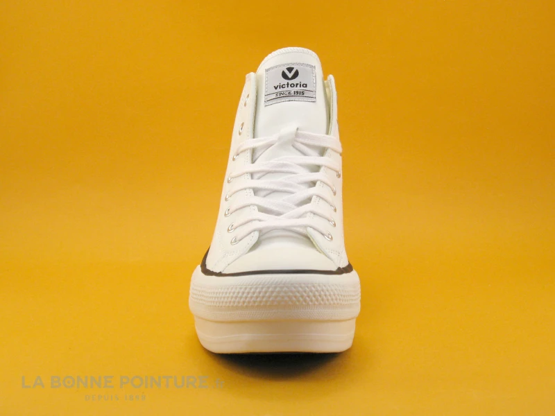 Cette basket montante Victoria 061107 est en simili cuir blanc, avec un retour en caoutchouc blanc sur la pointe.