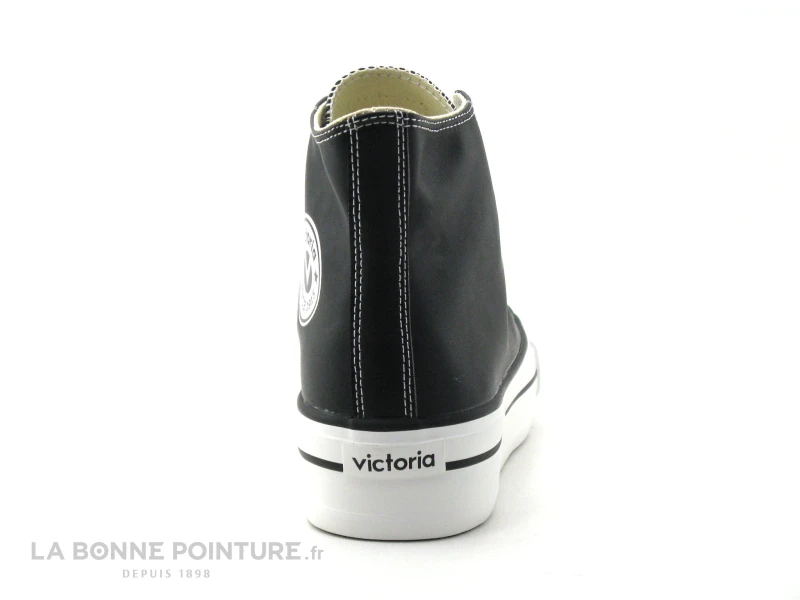 Cette basket montante Victoria 061107 à semelle compensée est en simili cuir noir, avec retour en caoutchouc blanc sur la pointe.