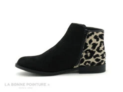 Ce nu-pieds fille à bout fermé est beige métallisé, avec des parties rose framboise, bleu jean et léopard.